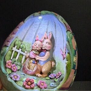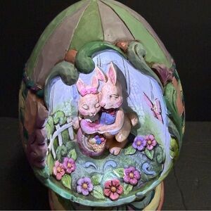 Easter Egg with Bunnies Spring Love Figurine light Up Jim Shore
