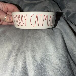 Charming Rae Dunn bowl with 'Merry Catmas' in red. Ideal for festive pet meals.