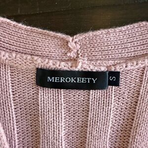 Embrace warmth and style with this elegant blush cable knit cardigan. Perfect for any occasion, it offers a chic and cozy layer to your ensemble.