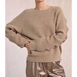 NEW MOLLY BRACKEN ribbed raglan buttoned sleeves sweater in beige
