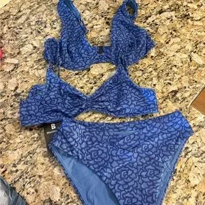 Willing to sell separately or as a set!!! Jacquard Midnight Blackbough Swim bikini set with two top options and one bottom. High waisted bottoms (M) that are so comfy and flattering and in great condition. Tops (one M and one L) have never been worn and one still has tags on it.