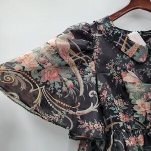 Selkie Lala Land Night in Paris Puff Dress 1X Black Floral Layered Mini Pheasant