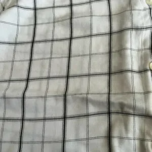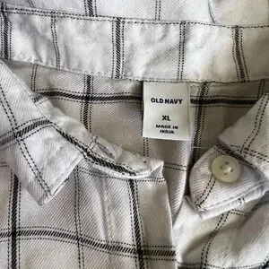 Plaid lightweight top, size XL. White and blue plaid button down with one chest pockets. In good used condition, there are some marks on the sleeves. Please see pictures.