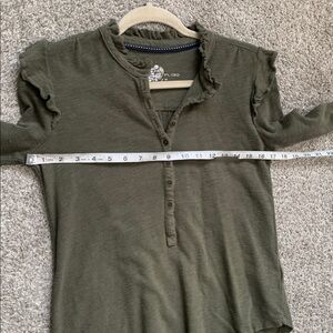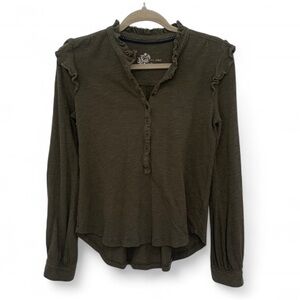 Pilcro Anthropologie Green Ruffle Trim Long Sleeve Shirt Size XS