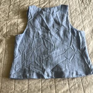 Elevate your wardrobe with this stylish light blue sleeveless vest. Featuring a classic button-up design, it's perfect for any occasion.