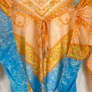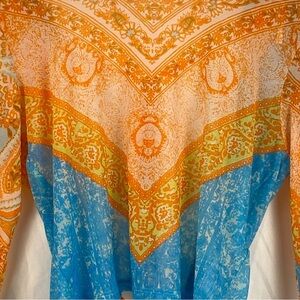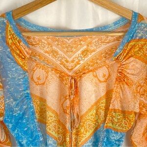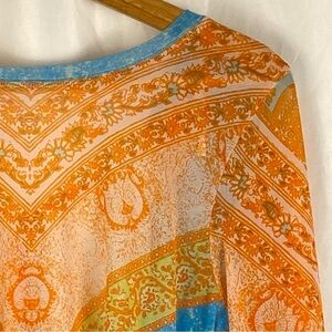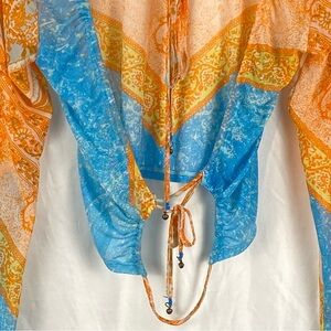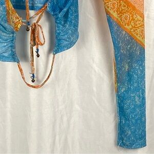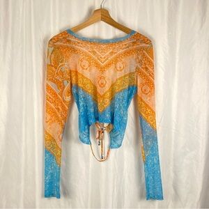 Free People Women's Paisley Boho Long Sleeve Mesh Cropped Open Back Top Size XS