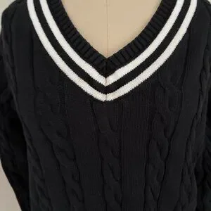 Hope & Henry Women's Long Sleeve V-Neck Cricket Cable Knit Sweater Size XL