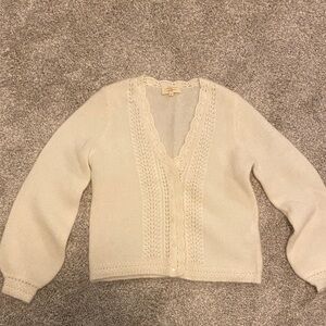 Sézane Angelie Cardigan in Ecru Ivory White Wool Blend Long Sleeves