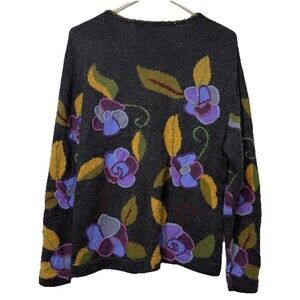 Tabask Handmade In Peru Alpaca/Wool Blend Colorful Floral Sweater Medium
