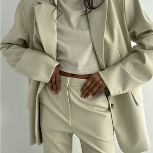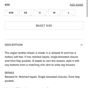 This vegan leather blazer is made in a relaxed fit and has a buttery soft feel. It has notched lapels, single-breasted closure and front flap pockets. A staple to own this season, style it with any bottoms from a matching mini skirt to wide leg trousers.