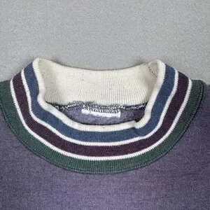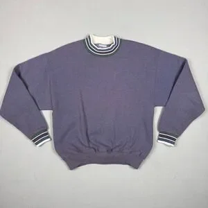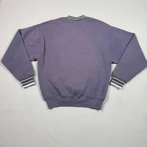 Vintage Purple Striped Trim Crewneck Sweatshirt Retro Pullover Cut Tag (Medium)