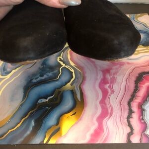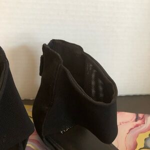 Chic black flats with a pointed toe. Features a comfortable Sheer mesh ankle strap. Ideal for versatile styling. Shoes are used and do have signs of wear as noted in the photos.