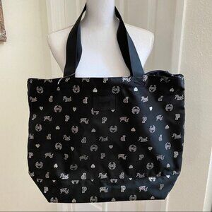 PINK Victoria’s Secret Tote Black Zip Top Sleepovers Day Trip Allover Logo NWT