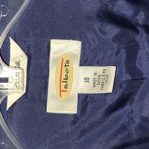 Chic royal blue pure silk blazer by Talbots. Features elegant silver buttons and a tailored fit. Perfect for professional and formal settings.