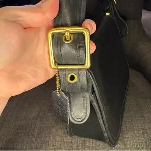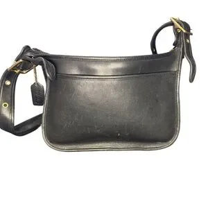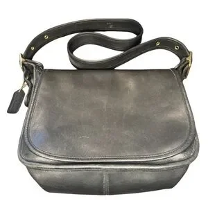 Vintage Coach Patricia Legacy Bag Model 9951 sleek black leather satchel. Features an adjustable strap and gold-tone hardware. Ideal for everyday use. Comes with a hang tag. Please note the callouts in the photos.