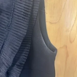 Elegant black sleeveless top with ruffle detailing. Perfect for any occasion.