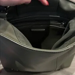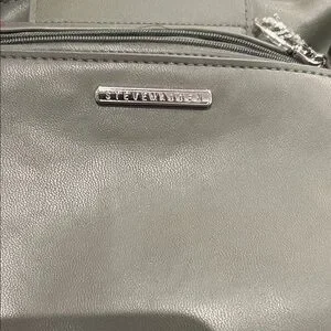 Chic and versatile Steve Madden shoulder bag in a beautiful sage/soft gray tone. This bag is perfect for everyday wear with its soft vegan leather, clean minimalist design, and silver hardware detail.