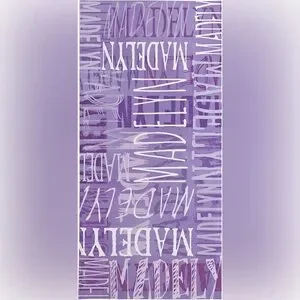 Purple with printed Emily in various fonts on one side and plain white on other side