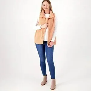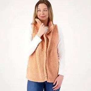 Koolaburra Ugg Sherpa Vest 1X Brushed Back Open Front Collared Fall Winter Pink