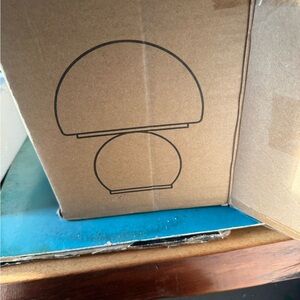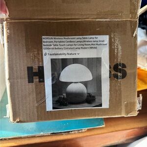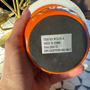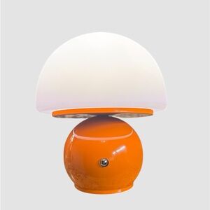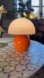Stylish table lamp with an orange base and white dome shade. Perfect for trending mushroom decor.