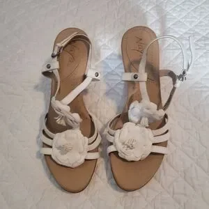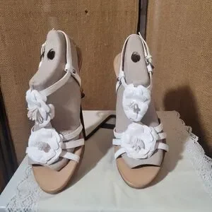 NAYA White Leather Sandals with Flower Detail and Block Heel Size 8.5