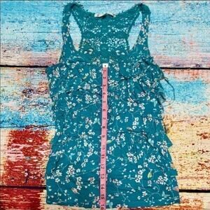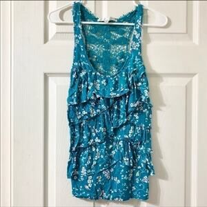 LC Lauren Conrad Floral Blue Crochet Back Tiered Ruffle Tank Size XS