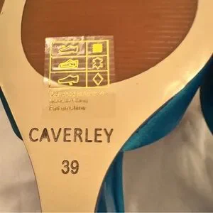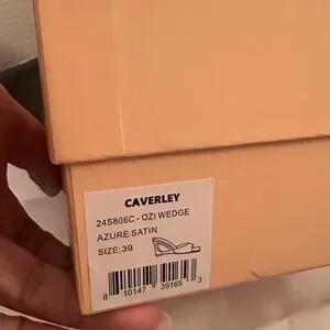 CAVERLEY Ozi Wedge Heels - Blue Satin & Leather Sculptured heeled mules Sz39 NEW