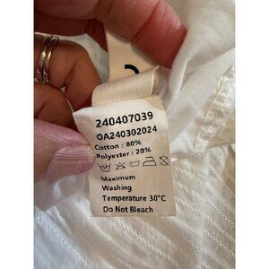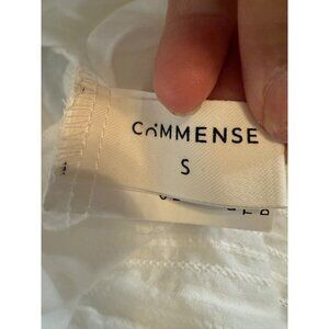 This elegant white midi dress by Commense is crafted from a soft cotton blend, providing comfort and style. It features delicate button detailing and adjustable straps, making it suitable for various occasions. The structured bodice enhances your silhouette while offering a timeless and sophisticated look.