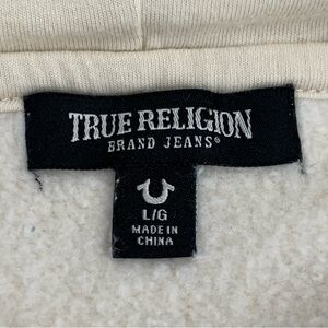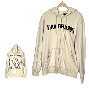 True Religion Full Zip Hoodie Men's Large Cream Fleece Graphic Print