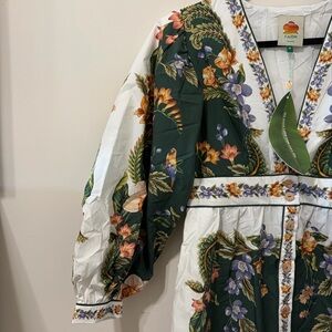 Farm Rio Green Floral Print Nature V Neck Buttoned Maxi Dress