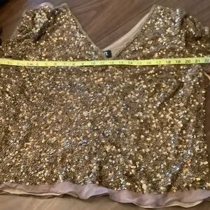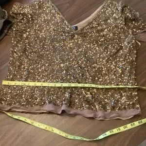 Style Tags / Keywords: #AdriannaPapell #CopperTop #SequinTop #EveningWear #PartyLook #CocktailTop #FormalStyle