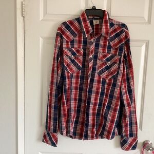 True Religion Men Long Sleeve Plaid Western button down shirt