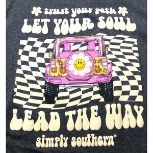 Simply Southern Pink Jeep Charcoal Graphic T-Shirt XL "Let Your Soul Lead The Wa