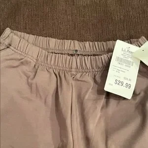 L.L. Bean Brown Elastic Waist Pants color is taupe