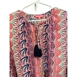 XXL Pre-Owned. Gather Blouse in Scallop. Super Cute Flowy Top in Pink, White