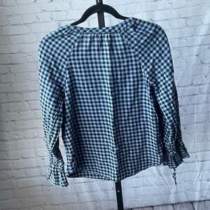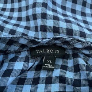 Talbots Black and Blue Gingham Print Blouse Size XS