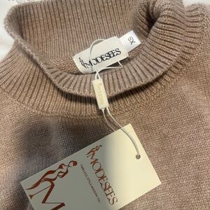 Cozy taupe knit sweater with a turtleneck. Ideal for a fashionable, warm outfit.