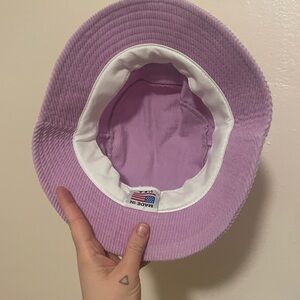 Add a pop of color to your outfit with this corduroy lilac bucket hat! Perfect for spring weather.