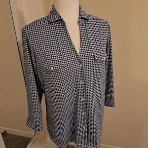 J. McLaughlin Brynn Top Sz M EUC Button-Front Pkts 3/4 Sleeve
