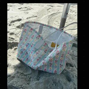 From beach trips to pool days, our mesh totes are the companion to all your summer adventures. The mesh material features our Climbing Roses print and lets the sand filter out. A matching zipper pouch is included, and can be attached to the interior with a snap closure.