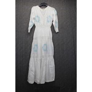 Tyler Boe Linen Dress Celia White Blue Embroidered Maxi Dress Medium