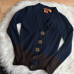Tory Burch Wool Navy and Brown Cardigan