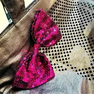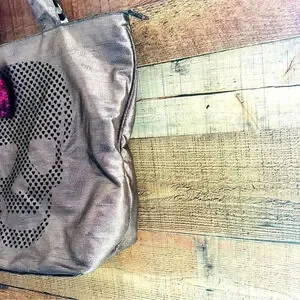 Vintage/Rare Betseyville Skull With Sequined Bow Metallic Tote