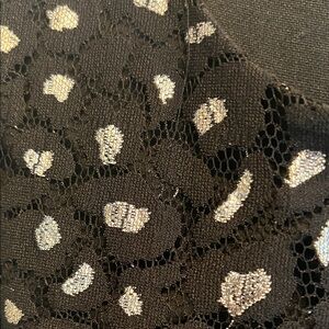 Chic mini dress with a black base and silver pattern. Ideal for stylish outings. Pit-to-pit 18". Waist 16". Skirt length 20".