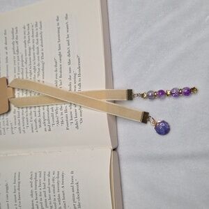 Handmade Cream Velvet Ribbon Purple Beaded Bookmark Purple Seashell Charm Book Mark Handcrafted