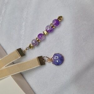 Handmade Cream Velvet Ribbon Purple Beaded Bookmark Purple Seashell Charm Gift