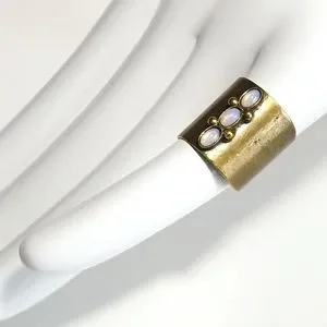 Elegant gold ring featuring three opalescent stones. Perfect for adding a touch of sophistication.