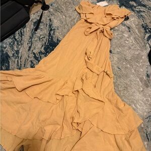 Chic strapless dress with ruffle details. Features a wrap design and flowing skirt. Perfect for summer occasions. Free People Tavia Endless Summer Smocked Tiered Ruffle Maxi Dress
