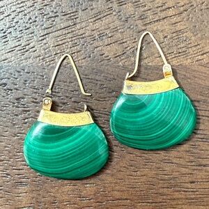 Natural malachite gold plated sterling silver drop earrings