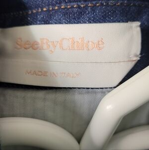 See By Chloe Blue Denim Shirt Dress Two-toned Velvet Mini